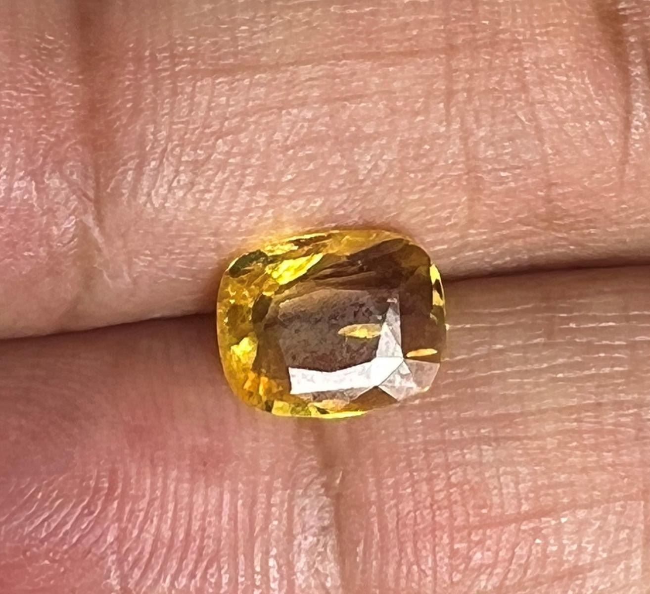 Natural Yellow Ceylon Sapphire; Weight-2.04 Cts; Size-9.52x7.52 MM; Shape- Cushion; Color- Yellow; Clarity - SI; Origin- Ceylon; Gently heated only....natural earth mined.