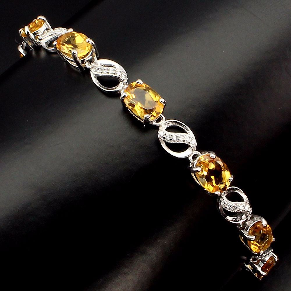 925 STERLING SILVER........PLATE-14K WHITE GOLD;LENGTH (INCHES)7;MAIN STONE-CITRINE;OTHER GEMS-CUBIC ZIRCONIA;TOTAL WEIGHT-44.49 CT (TOTAL WEIGHT OF SILVER + STONE);DIMENSION* STONE 7.0 X 5.0 MM. * CZ 1.0 MM. * FACE BRACELET 180.0 X 5.0 MM.;MAIN STONE SHAPE-OVAL CUT;MAIN STONE COLOR-TOP RICH YELLOW;CLARITY/GRADE-IF TO VVS;TREATMENT-UNHEATED;ORIGIN-BRAZIL;HARDNESS-7.0