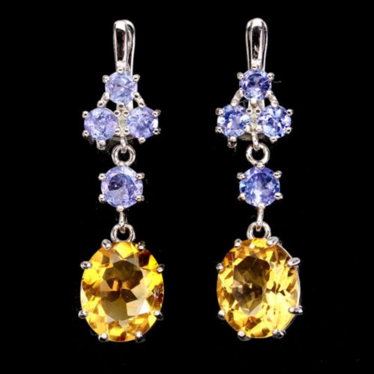 925 STERLING SILVER;PLATE14K WHITE GOLD;MAIN STONE-CITRINE;OTHER GEMS-TANZANITE;TOTAL WEIGHT-38.02 CT (TOTAL WEIGHT OF SILVER + STONE)DIMENSION* STONE 4.0 TO 12.0 X 10.0 MM. * FACE EARRINGS 38.0 X 10.0 MM.MAIN STONE SHAPE-OVAL CUT;MAIN STONE COLOR-TOP RICH YELLOW;CLARITY/GRADEIF;TREATMENTUNHEATED;ORIGINBRAZIL;HARDNESS7.0 - 7.5;