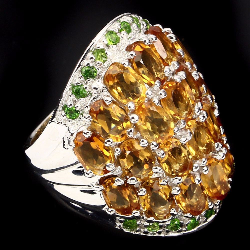 925 STERLING SILVER; PLATE -14K WHITE GOLD; RING SIZE - 7.5; MAIN STONE- CITRINE;; OTHER GEMS -CHROME DIOPSIDE; TOTAL WEIGHT -82.36 CT (TOTAL WEIGHT OF SILVER + STONE) DIMENSION * STONE 2.0 TO 6.0 X 4.0 MM. * RING 7.5 SIZE * FACE RING 30.0 X 23.0 MM.; MAIN STONE SHAPE -OVAL CUT; MAIN STONE COLOR -TOP RICH YELLOW; CLARITY/GRADE -IF TO VVS; LUSTER -CHARMING; TREATMENT -UNHEATED; ORIGIN -BRAZIL