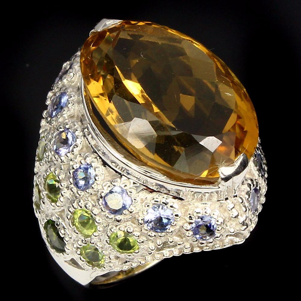 925 STERLING SILVER.........PLATE-14K WHITE GOLD.RING SIZE-6;MAIN STONE-CITRINE;OTHER GEMS-CHROME DIOPSIDE,PERIDOT,TANZANITE;TOTAL WEIGHT-65.24 CT (TOTAL WEIGHT OF SILVER + STONE)DIMENSION* STONE 2.5 TO 20.0 X 14.0 MM. * FACE RING 26.0 X 23.0 MM.MAIN STONE SHAPE-OVAL CUT;MAIN STONE COLOR-TOP RICH YELLOW;CLARITY/GRADE-IF TO VVS;LUSTER-BEAUTEOUS;TREATMENT-UNHEATED;ORIGIN-BRAZIL;HARDNESS-7;