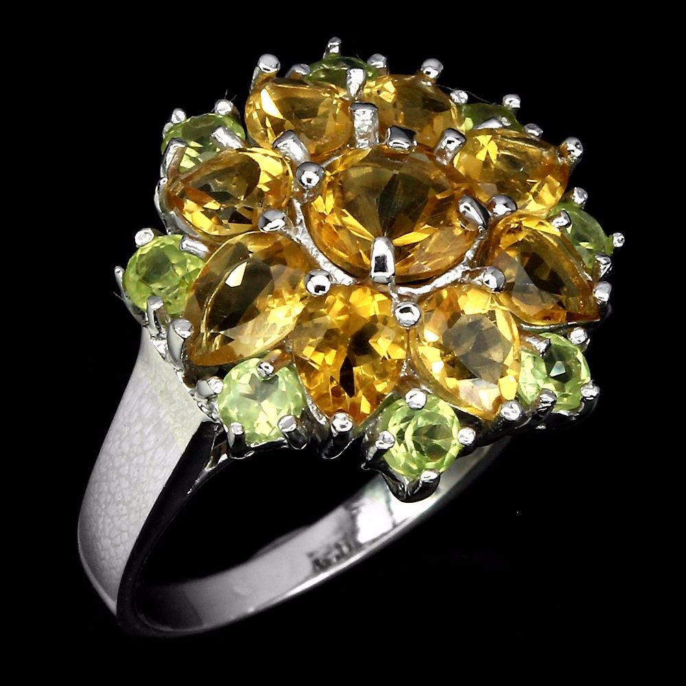 925 STERLING SILVER;PLATE-14K WHITE GOLD;RING SIZE-7;MAIN STONE-CITRINE;OTHER GEMS-PERIDOT;TOTAL WEIGHT-28.95 CT (TOTAL WEIGHT OF SILVER + STONE)DIMENSION* STONE 3.0 TO 7.0 MM. * FACE RING 18.0 MM.MAIN STONE SHAPE-ROUND CUT;MAIN STONE COLOR-TOP RICH YELLOW;CLARITY/GRADE-IF TO VVS;LUSTER-ELEGANT;TREATMENT-UNHEATED;ORIGIN-BRAZIL;HARDNESS-7;