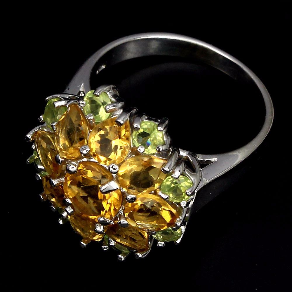 925 STERLING SILVER;PLATE-14K WHITE GOLD;RING SIZE-7;MAIN STONE-CITRINE;OTHER GEMS-PERIDOT;TOTAL WEIGHT-28.95 CT (TOTAL WEIGHT OF SILVER + STONE)DIMENSION* STONE 3.0 TO 7.0 MM. * FACE RING 18.0 MM.MAIN STONE SHAPE-ROUND CUT;MAIN STONE COLOR-TOP RICH YELLOW;CLARITY/GRADE-IF TO VVS;LUSTER-ELEGANT;TREATMENT-UNHEATED;ORIGIN-BRAZIL;HARDNESS-7;