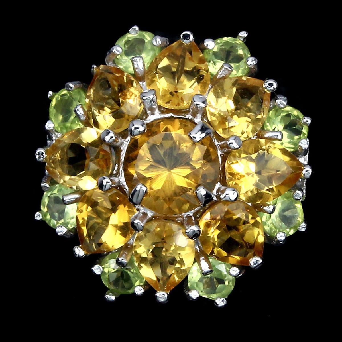 925 STERLING SILVER;PLATE-14K WHITE GOLD;RING SIZE-7;MAIN STONE-CITRINE;OTHER GEMS-PERIDOT;TOTAL WEIGHT-28.95 CT (TOTAL WEIGHT OF SILVER + STONE)DIMENSION* STONE 3.0 TO 7.0 MM. * FACE RING 18.0 MM.MAIN STONE SHAPE-ROUND CUT;MAIN STONE COLOR-TOP RICH YELLOW;CLARITY/GRADE-IF TO VVS;LUSTER-ELEGANT;TREATMENT-UNHEATED;ORIGIN-BRAZIL;HARDNESS-7;