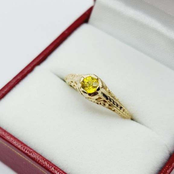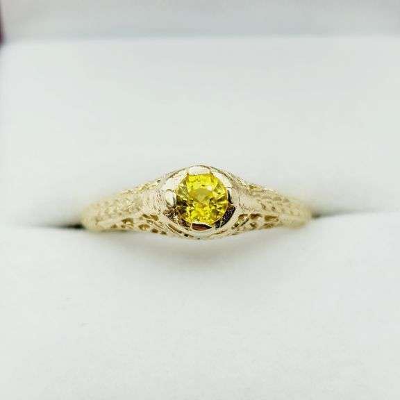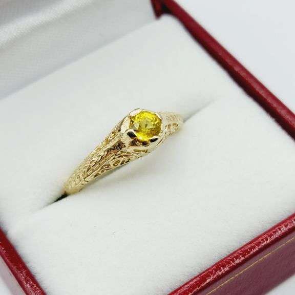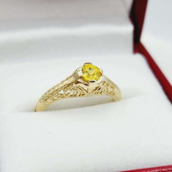 14kt. yellow gold 3.9mm natural yellow sapphire ring, 0.30cts., size 5.5. With appraisal $1,705.00.