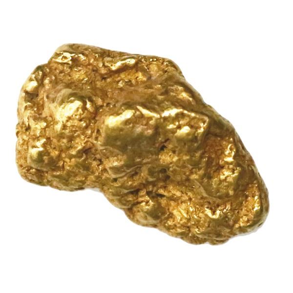Natural gold nugget from Australia, 4.37 grams. 5/8". Neatly compact nugget with mostly smoothed surfaces.