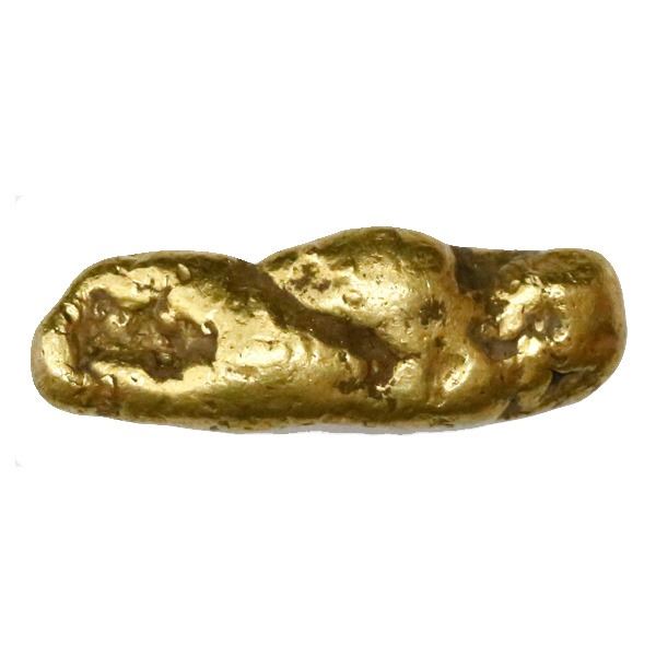Natural gold nugget from Australia, 7.33 grams. 7/8" Straight and mostly smooth, like a long thin baguette.