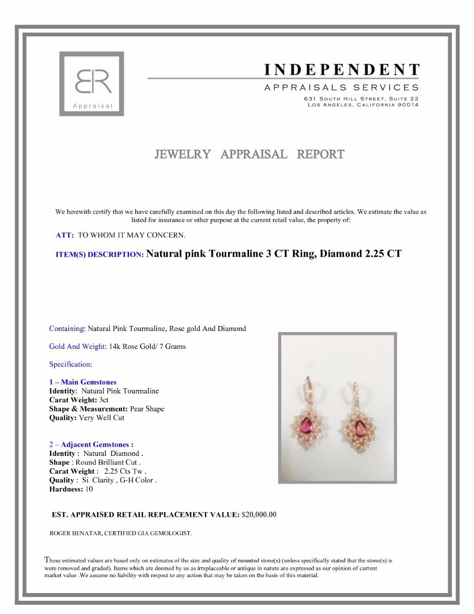 Natural pink Tourmaline 3 CT Ring, Diamond 2.25 CT 14K Rose Gold :7 grams Diamond:2.25 CT