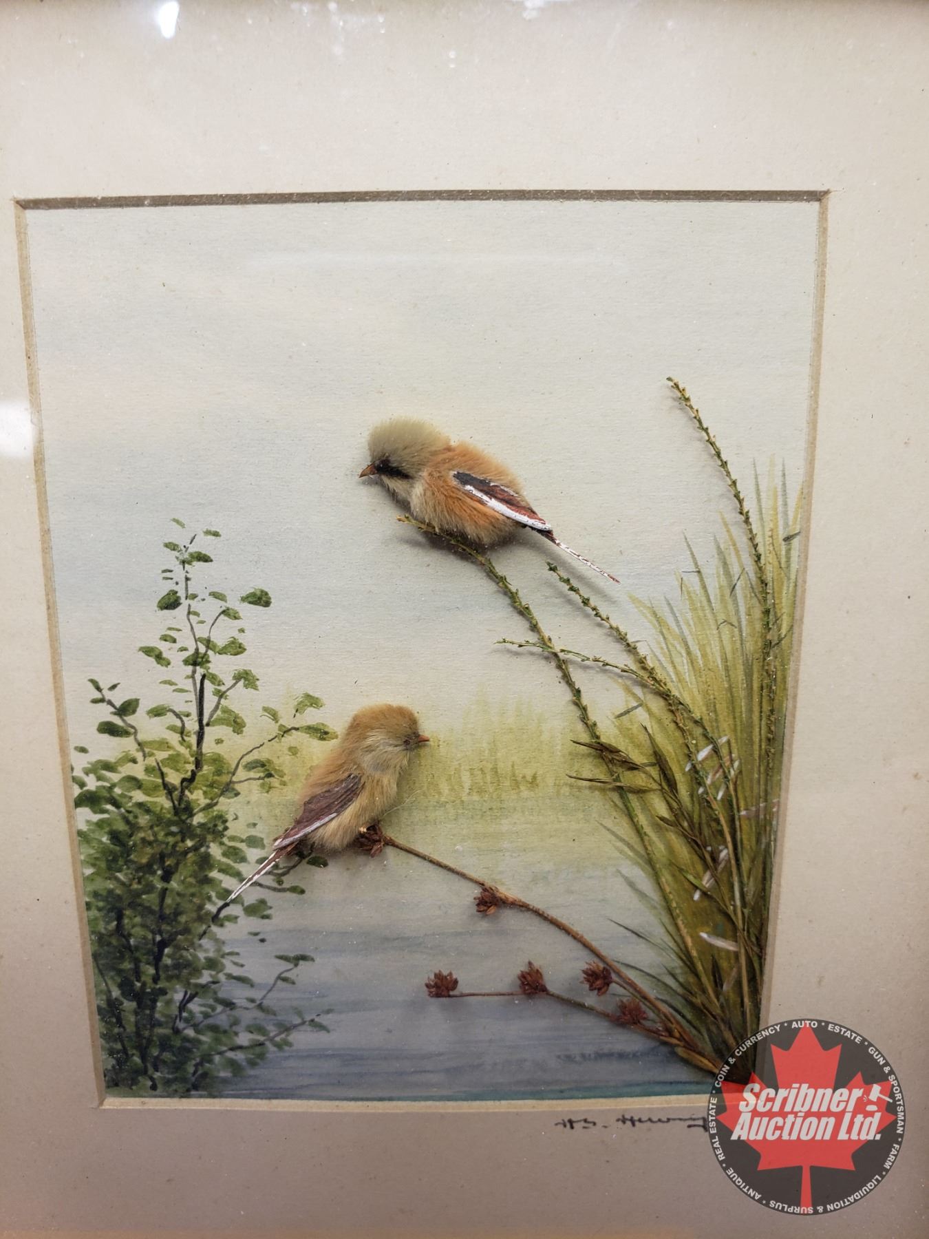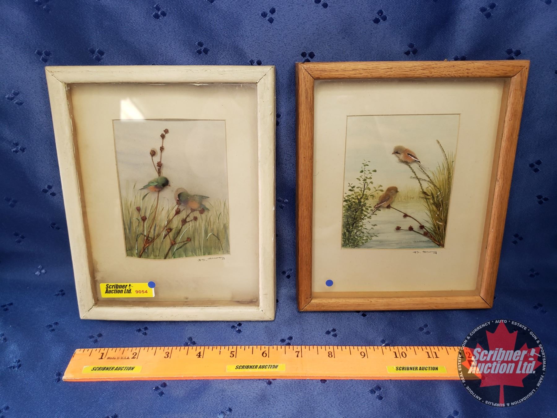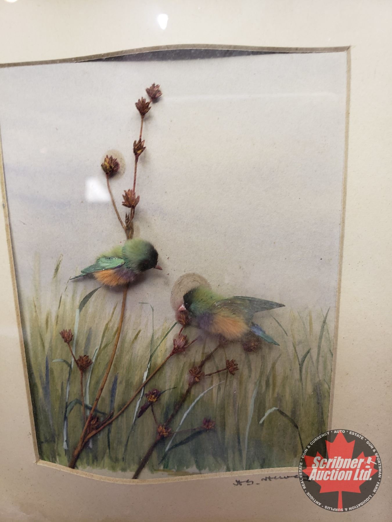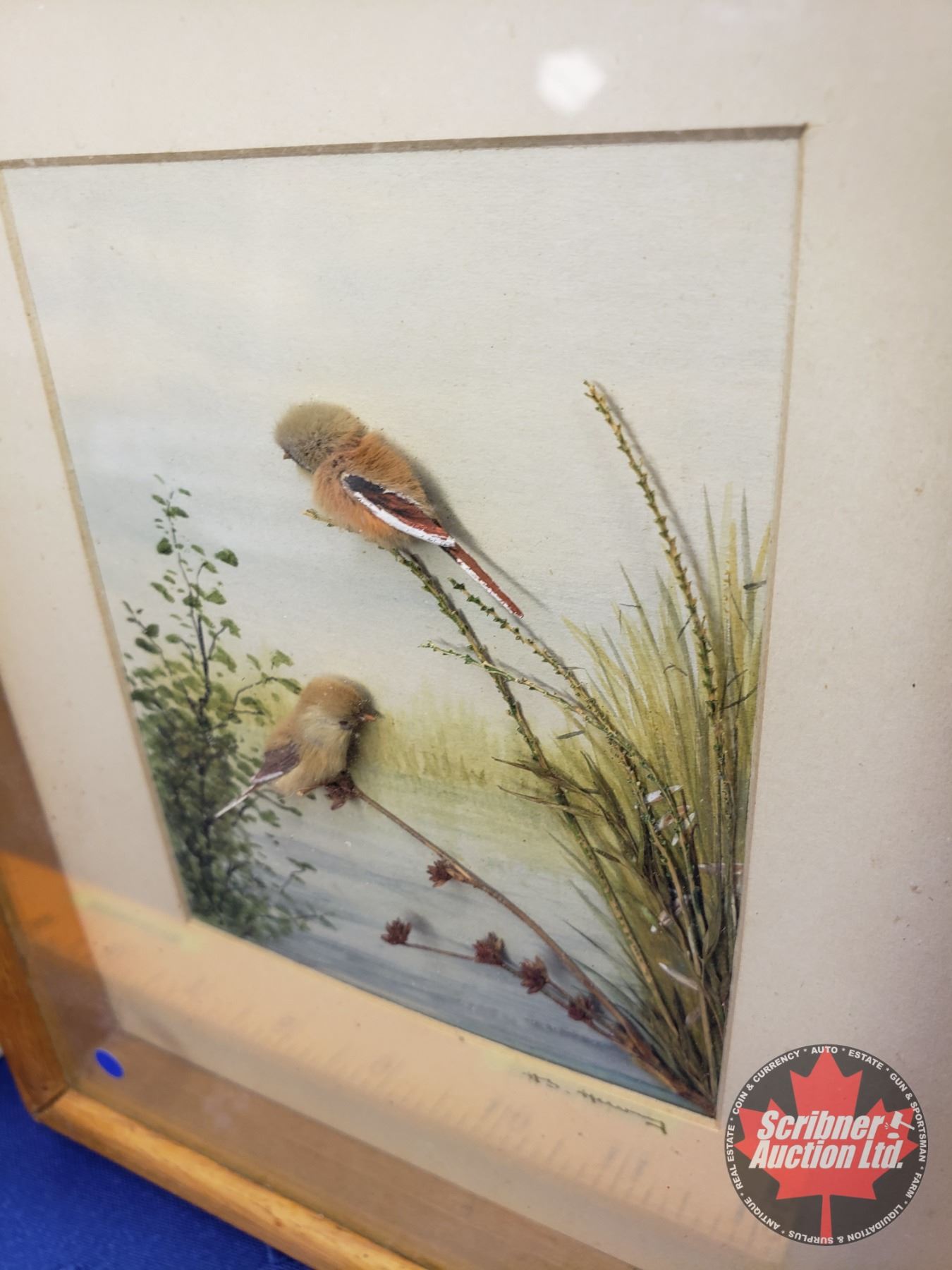 "Nature Study" Diorama Artwork "Birds" by H.E. Hervey (2 Framed) c. 1940's