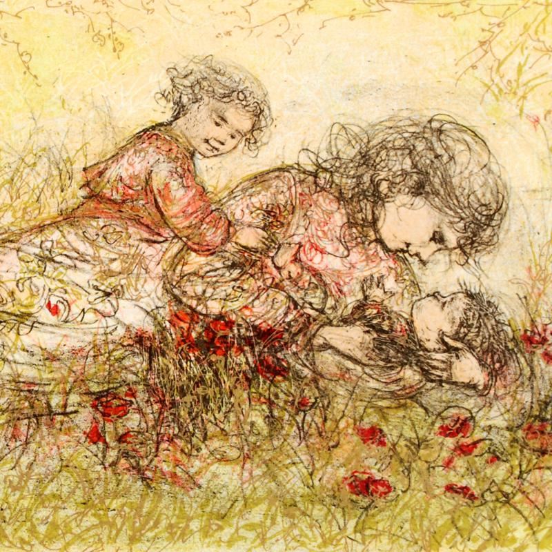 "Natures Caress" is a limited edition lithograph on rice paper, numbered and hand signed by Edna Hibel (1917-2014). Includes Certificate of Authenticity! Measures approx. 22" x 12" (with border), 17" x 9" (image).