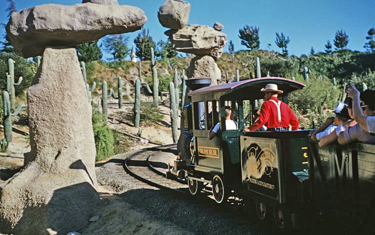 (Disneyland, 1956) Original train spike from the Rainbow Caverns/Nature’s Wonderland attractions framed and sold as a limited edition through the Disneyana shop. The 4.5 in. spike is framed with a miniature train. Overall size 10.5 x 10.5 in.