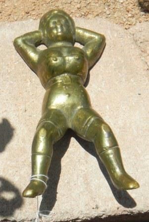 Brass Naughty Lady Boot Jack. Measuring approximately 10 x 4 x 2 inches. Weighs four pounds. Condition Good. Circa 1900. Shipping 15.00. Condition good Lady has wear on nose from use.