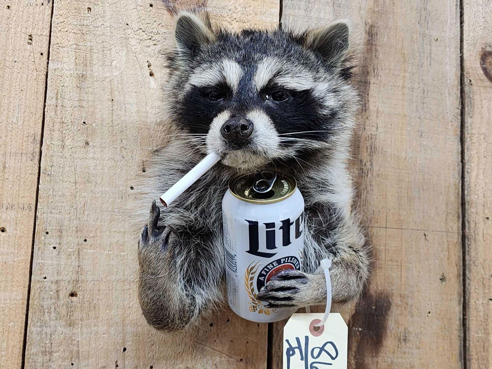 86.111 Drinking Beer smoking a cigarette flipping the bird Brand new mount
