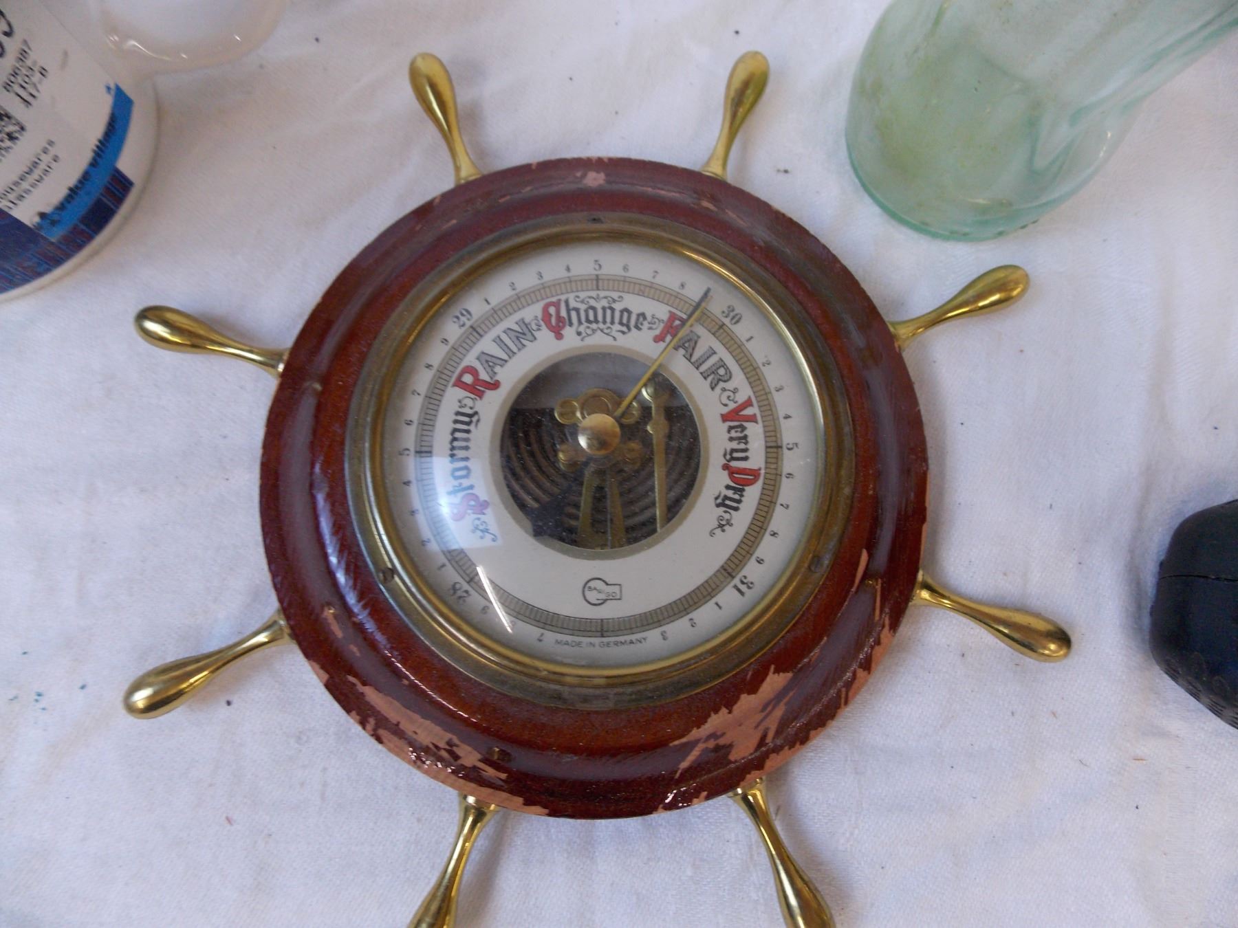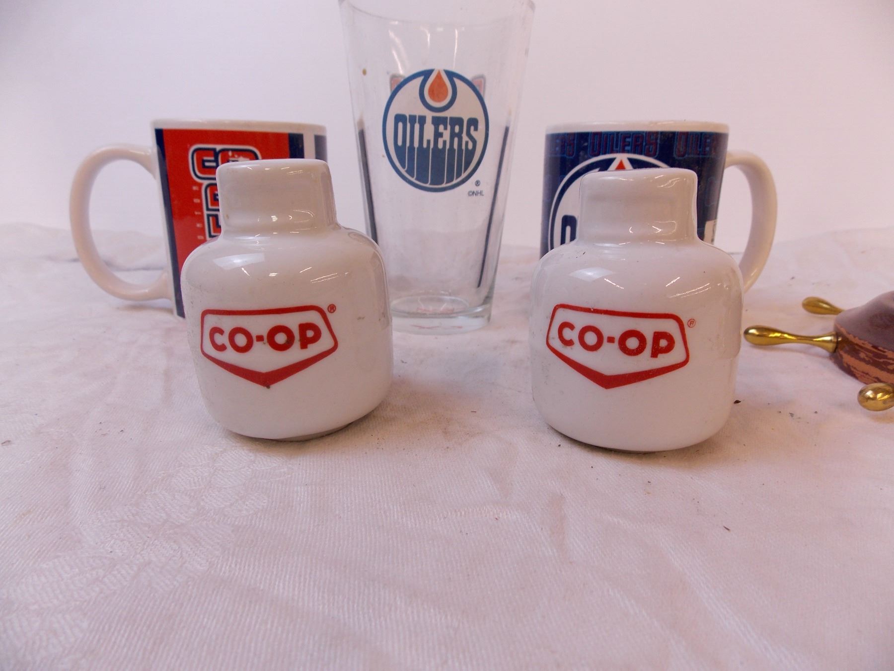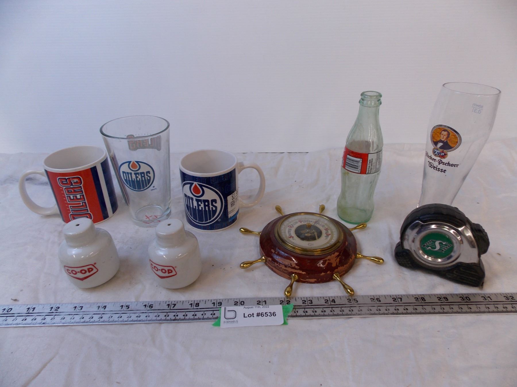 Nautical Barometer, 2 Oilers Mugs, Oiler Cup, Coop Salt and Pepper Shakers + Assorted Items