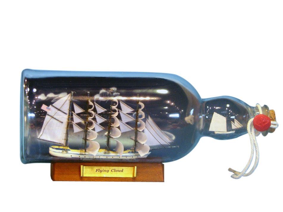 Nautical Blue Flying Cloud Ship in a Bottle w/Sky 11" o **|**|** Nautical Blue Flying Cloud Ship in a Bottle w/Sky 11" on Wooden Base w/Metal Nameplate