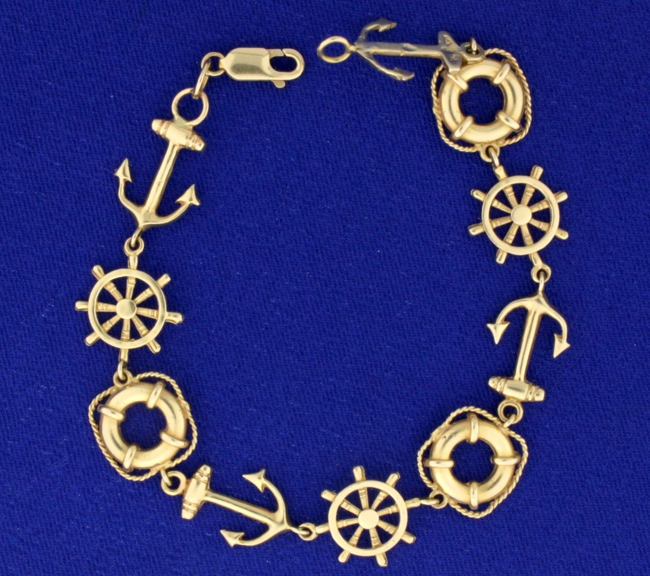 Nautical Bracelet with anchor, rescue tube, and ship's helm