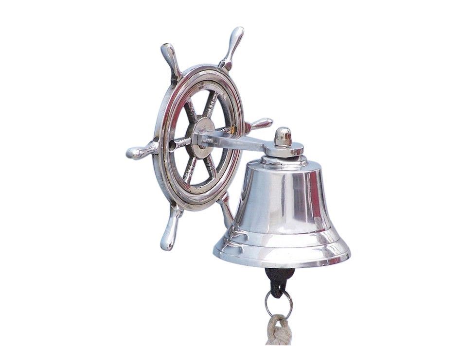 Nautical Chrome Hanging Ship Wheel Bell 7" **|**|** Nautical Chrome Hanging Ship Wheel Bell 7"