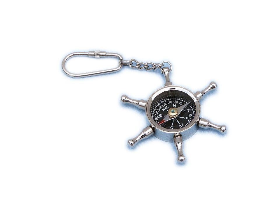 Nautical Chrome Ship Wheel Compass Key Chain 5" **|**|** Nautical Chrome Ship Wheel Compass Key Chain 5"