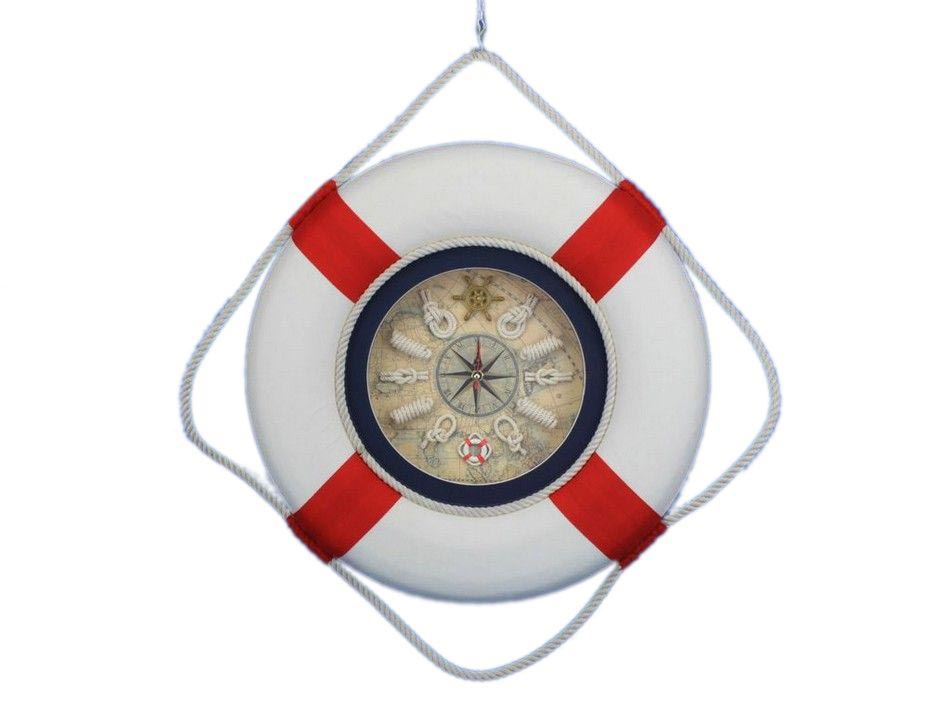Nautical Classic White Decorative Life Ring Clock with **|**|** Nautical Classic White Decorative Life Ring Clock with Red Bands 18"