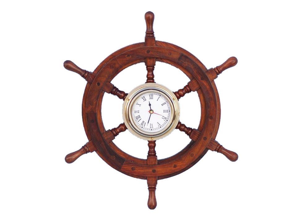 Nautical Deluxe Class Wood And Brass Ship Wheel Clock 1 **|**|** Nautical Deluxe Class Wood And Brass Ship Wheel Clock 12"
