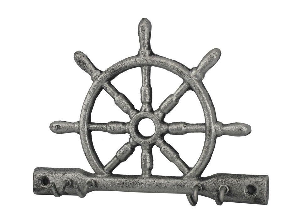 Nautical Rustic Silver Cast Iron Ship Wheel with Hooks **|**|** Nautical Rustic Silver Cast Iron Ship Wheel with Hooks 8"