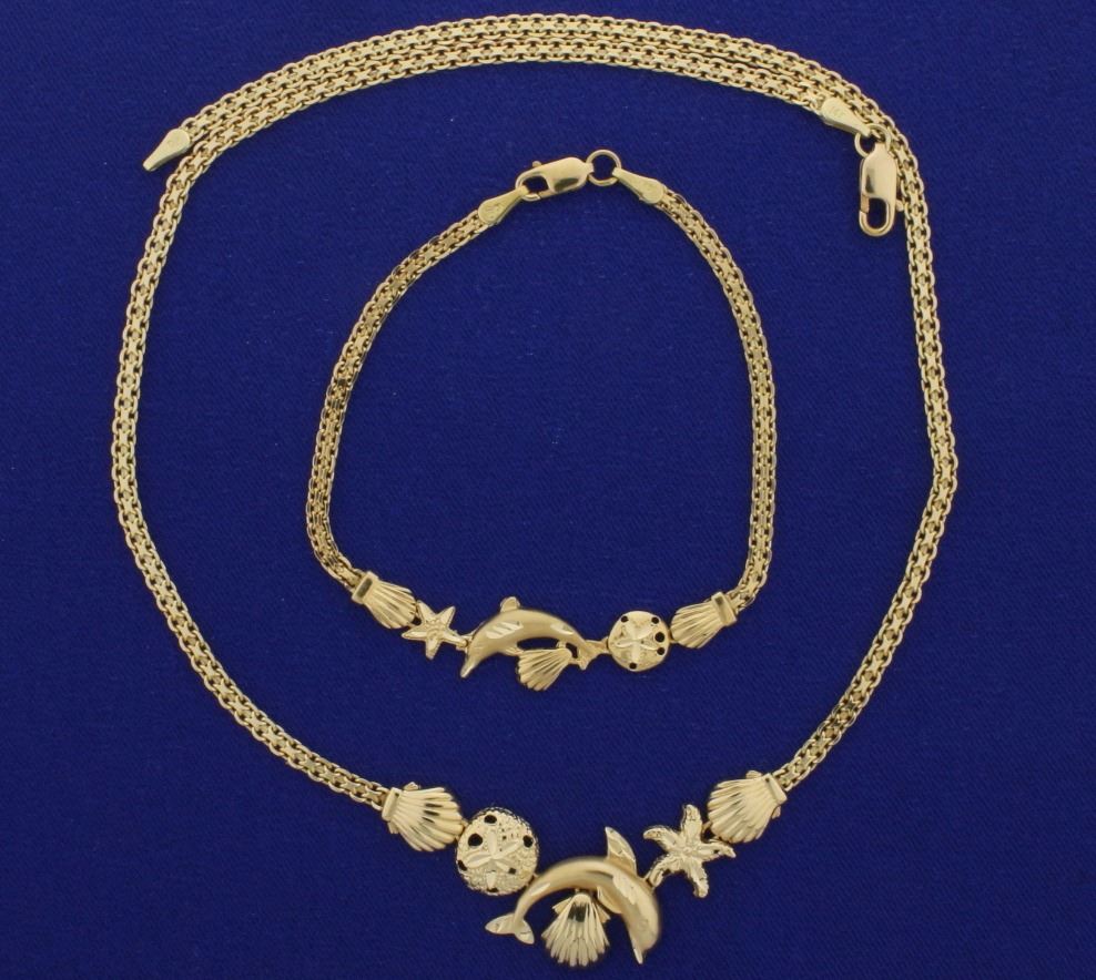In 14k yellow gold. 7 1/4" bracelet and 17 1/2" necklace. 2.8mm wide. 17.5g.