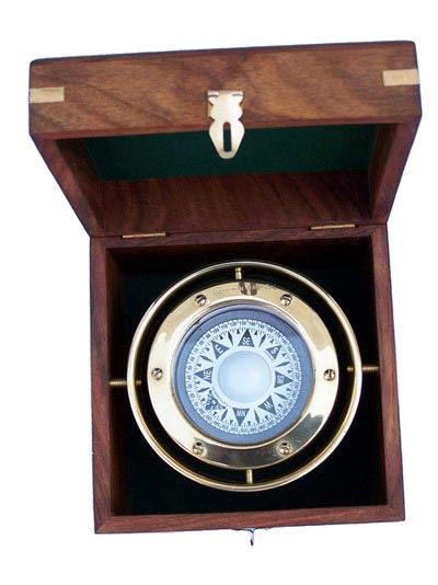 Nautical Solid BrassGimbal Compass w/ Rosewood Box 4.5" **|**|** Nautical Solid BrassGimbal Compass w/ Rosewood Box 4.5"