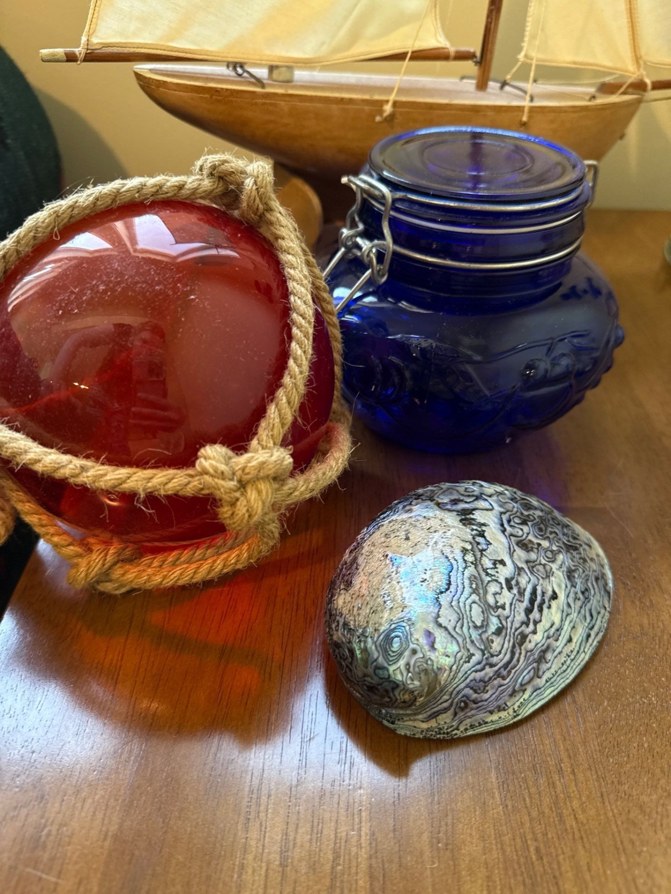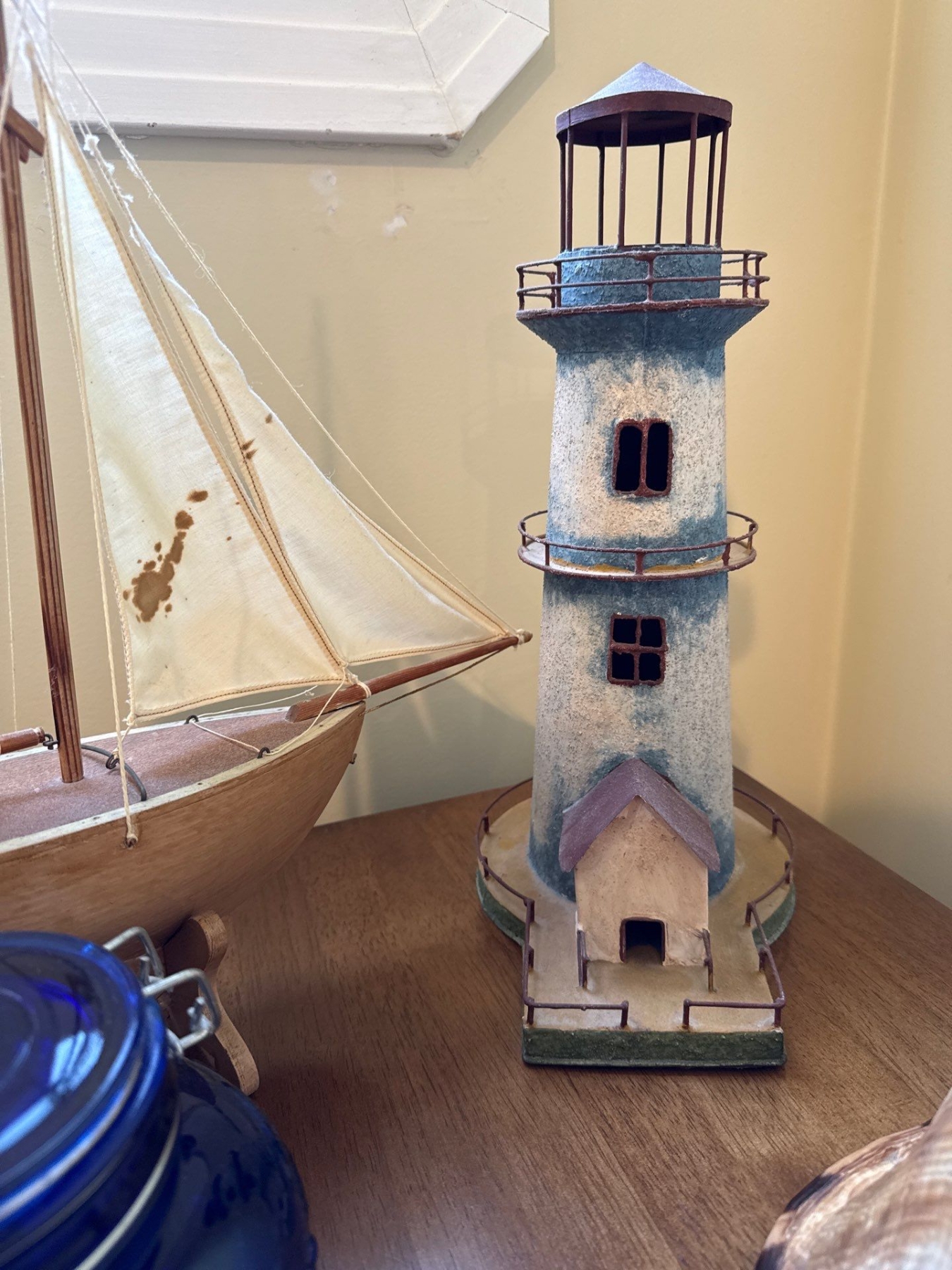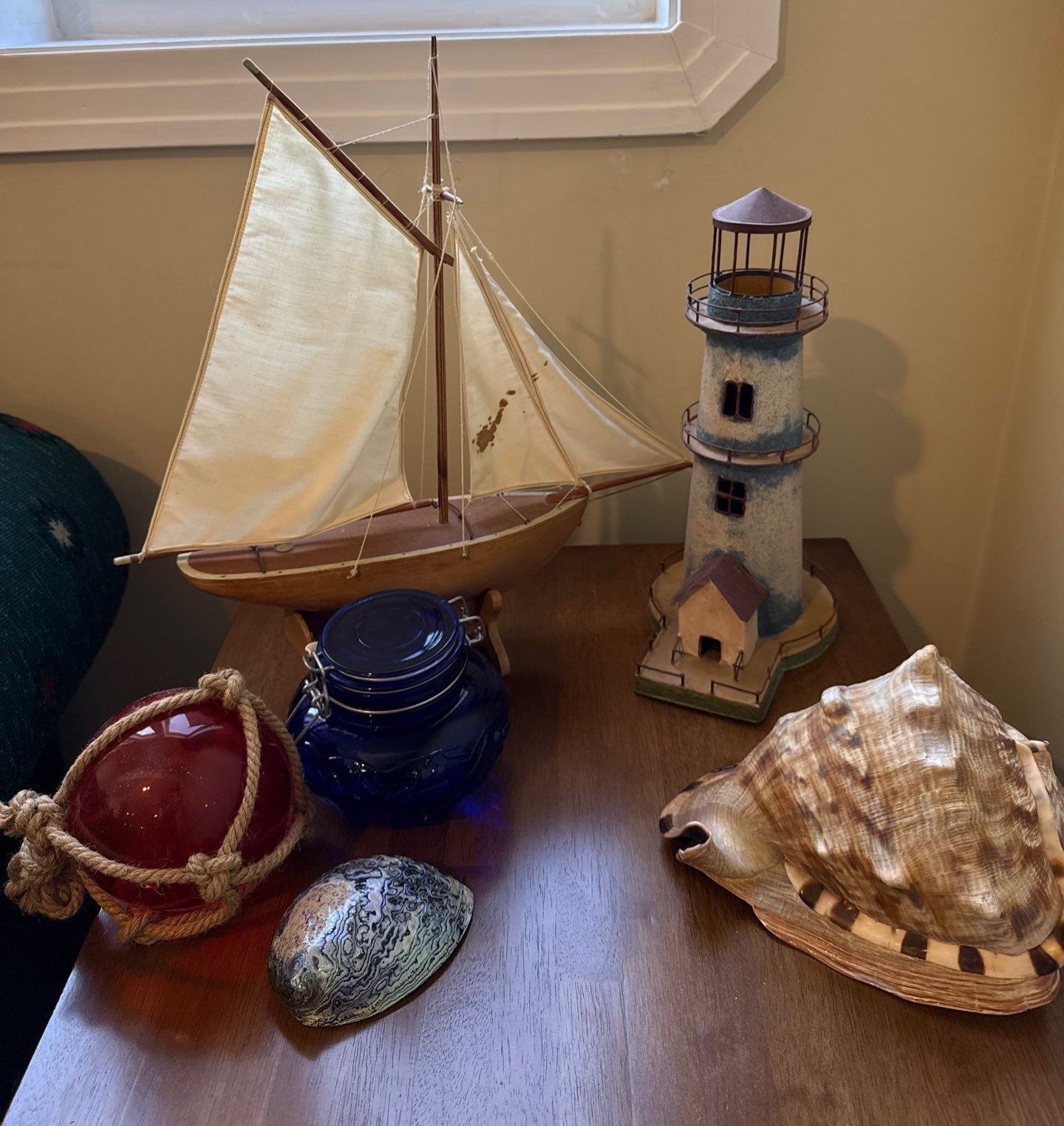 Nautical Themed Decor Incl. Sailboat, Lighthouse, Shells, Glassware