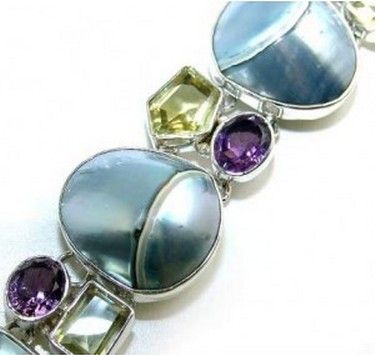 Silver & Nautilus Shell, Lemon Quartz and Amethyst Bracelet. Allow 6 to 8 weeks for delivery.