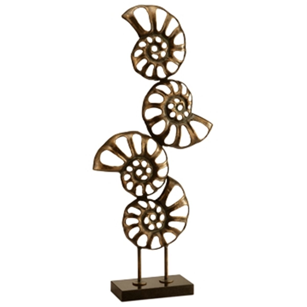Nautilus Shell Sculpture - 24"H 10.5"W 3.5"D - Cast Iron On Marble Base