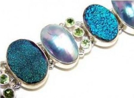 Silver & Nautilus Shell, Titanium Drusy and Peridot Bracelet. Allow 6 to 8 weeks for delivery.
