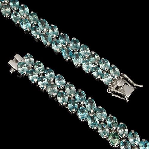 925 STERLING SILVER.....14K WHITE GOLD Plated;LENGTH (INCHES)-7;MAIN STONE-ZIRCON;TOTAL WEIGHT-146.85 CT (TOTAL WEIGHT OF SILVER + STONE)DIMENSION* STONE 6.0 X 4.0 MM. * FACE BRACELET 170.0 X 10.0 MM.;MAIN STONE SHAPE-OVAL CUT;MAIN STONE COLOR-TOP SEAFOAM BLUE;CLARITY/GRADEIF TO VVS;TREATMENT- HEATEDORIGINCAMBODIA -HARDNESS7.5