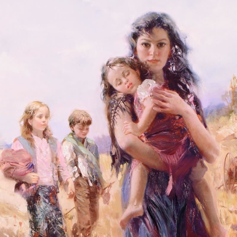 "Nauvoo Legacy" is a limited edition giclee on stretched canvas that has been hand-embellished by Pino himself, AP numbered and hand signed by Pino (1939-2010). Includes Certificate of Authenticity. Measures approx. 24" x 30" (image).