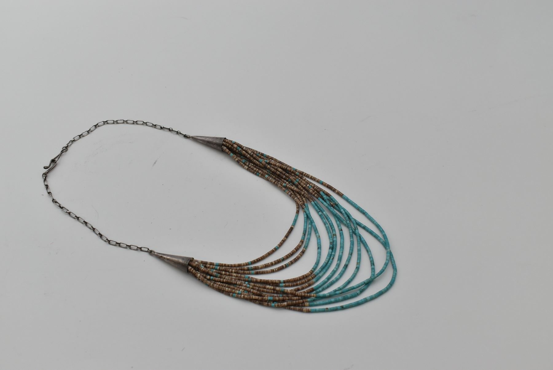 Navajo 12 Strand Turquoise, Shell Heishi Necklace
