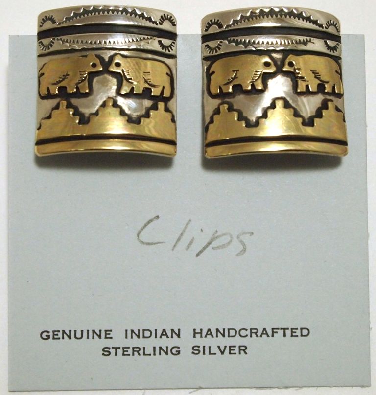 Navajo 12k Gold Fill over Sterling Silver Bears Clip-on Earrings - Tommy Singer