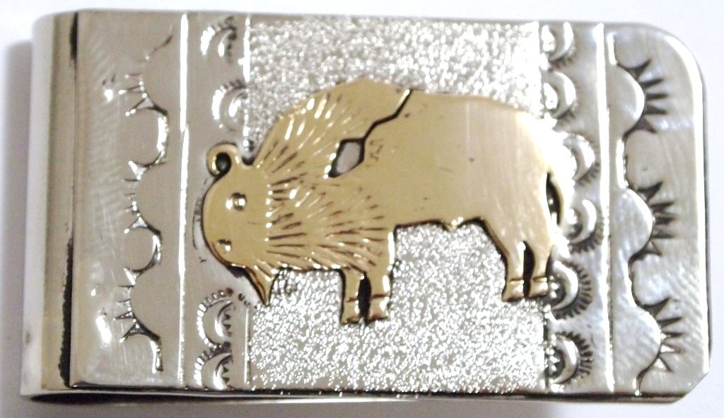 Navajo 12k Gold Fill over Sterling Silver Buffalo Money Clip - Roger Jones