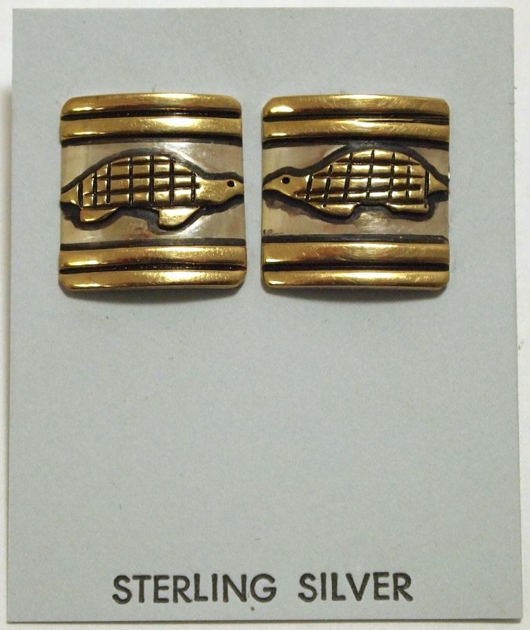 Navajo 12k Gold Fill over Sterling Silver Turtle Post Earrings - Tommy Singer