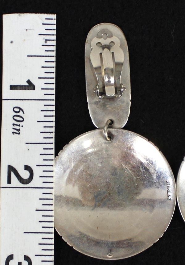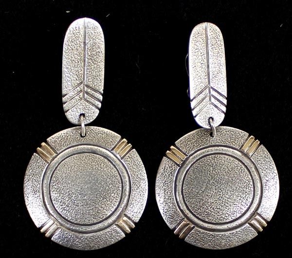 Native American Navajo 14K Gold and Brushed Sterling Clip On Earrings, measures 2.75"L, hallmarked and stamped 14K and sterling