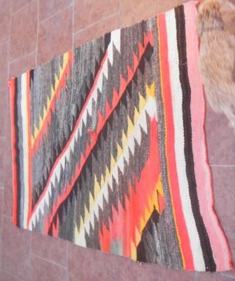 Navajo Weaving measuring 70 by 50. This is an 1880 Transitional Navajo Wearing Blanket. Needs some restoration. Color is great. Shipping $20.00