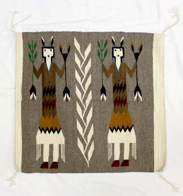 Beautiful Navajo 2 Yei Wool Textile Rug, measures 27'' x 30'', 4 cornered tassel intact, nice tight weave in beautiful colors, well executed