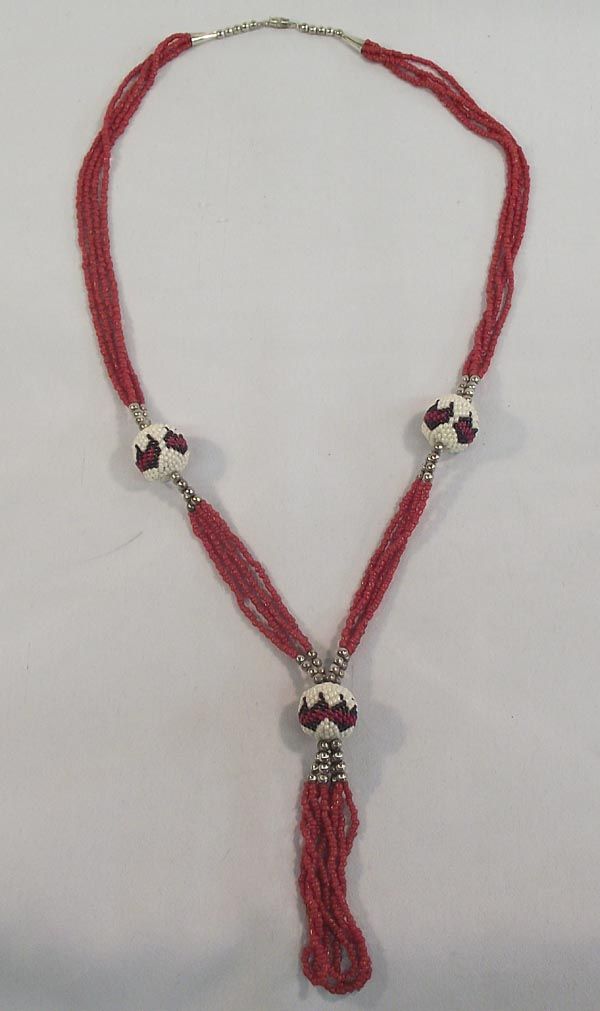 Native American Navajo 4 Strand Hand Beaded Necklace. Necklace measures approx. 29'' with pendant 4''.