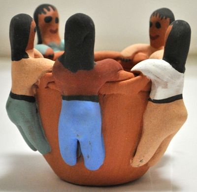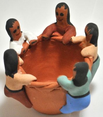 Navajo 5-Child Storyteller Bowl Pottery - Eva Plummer
