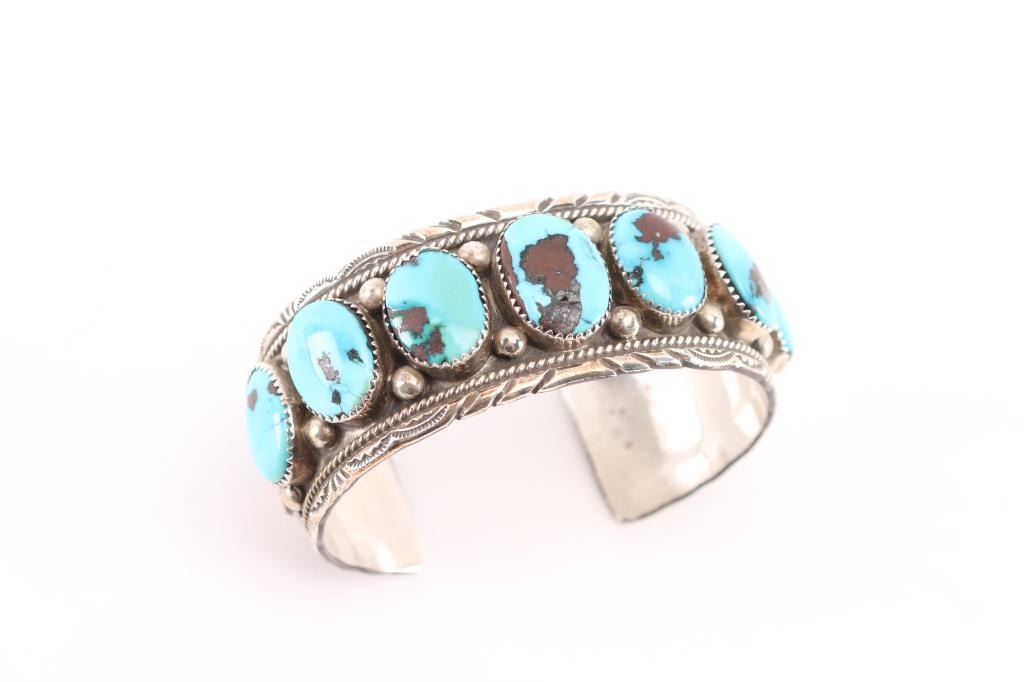 set with oval cut turquoise in sterling silver maker marked "EC",.