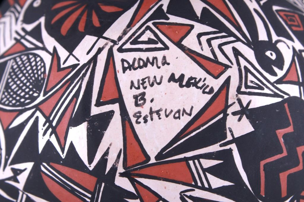 Featured in this lot is this very fine signed Acoma pottery jar signed and made by Berleen Estevan.