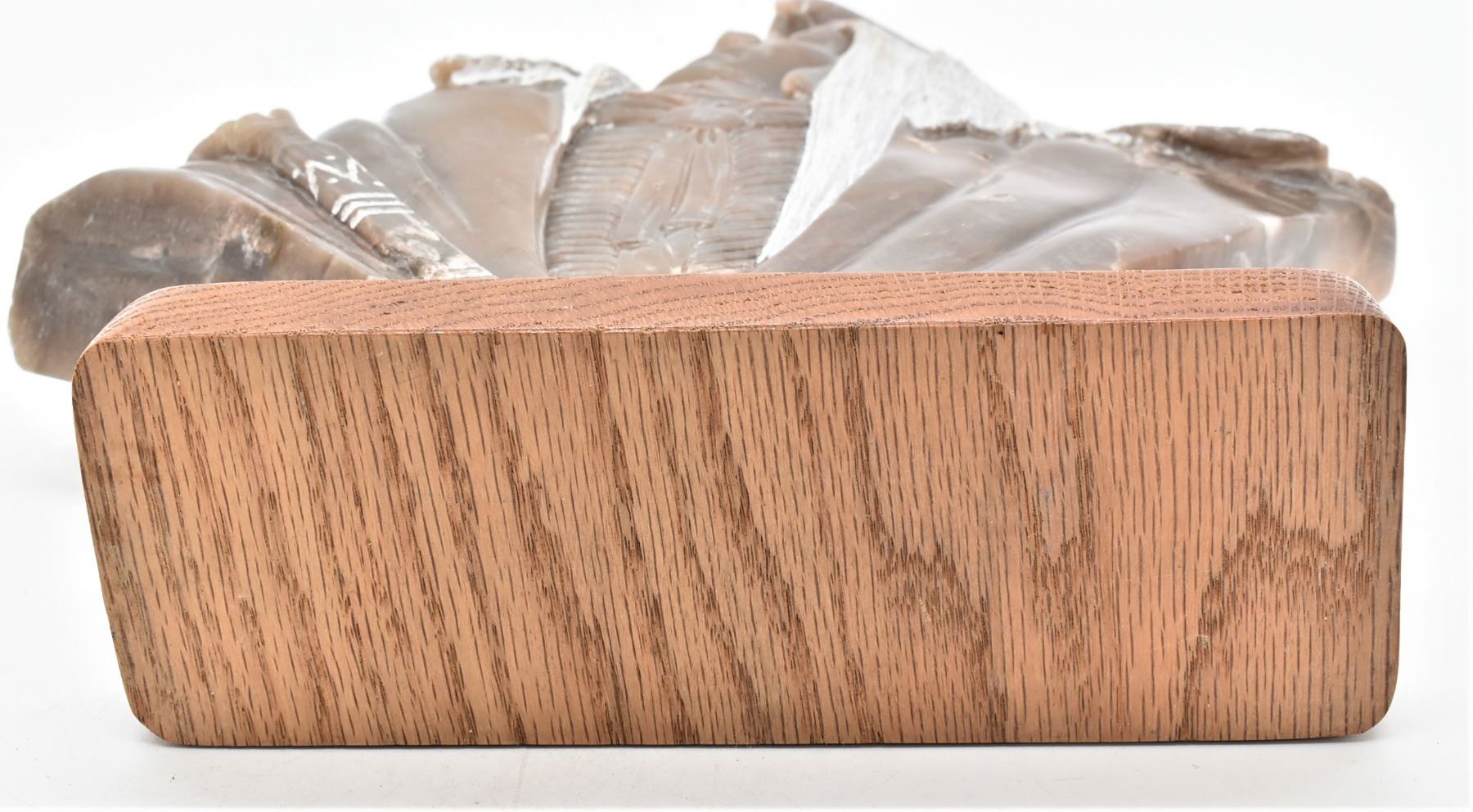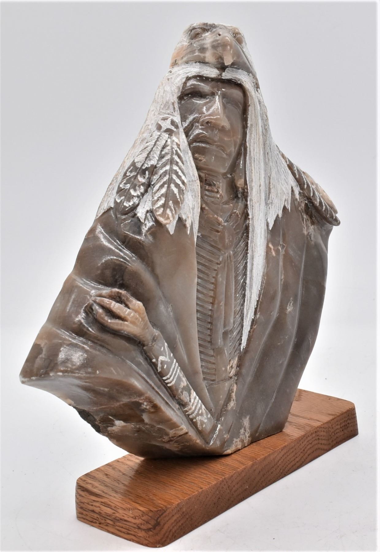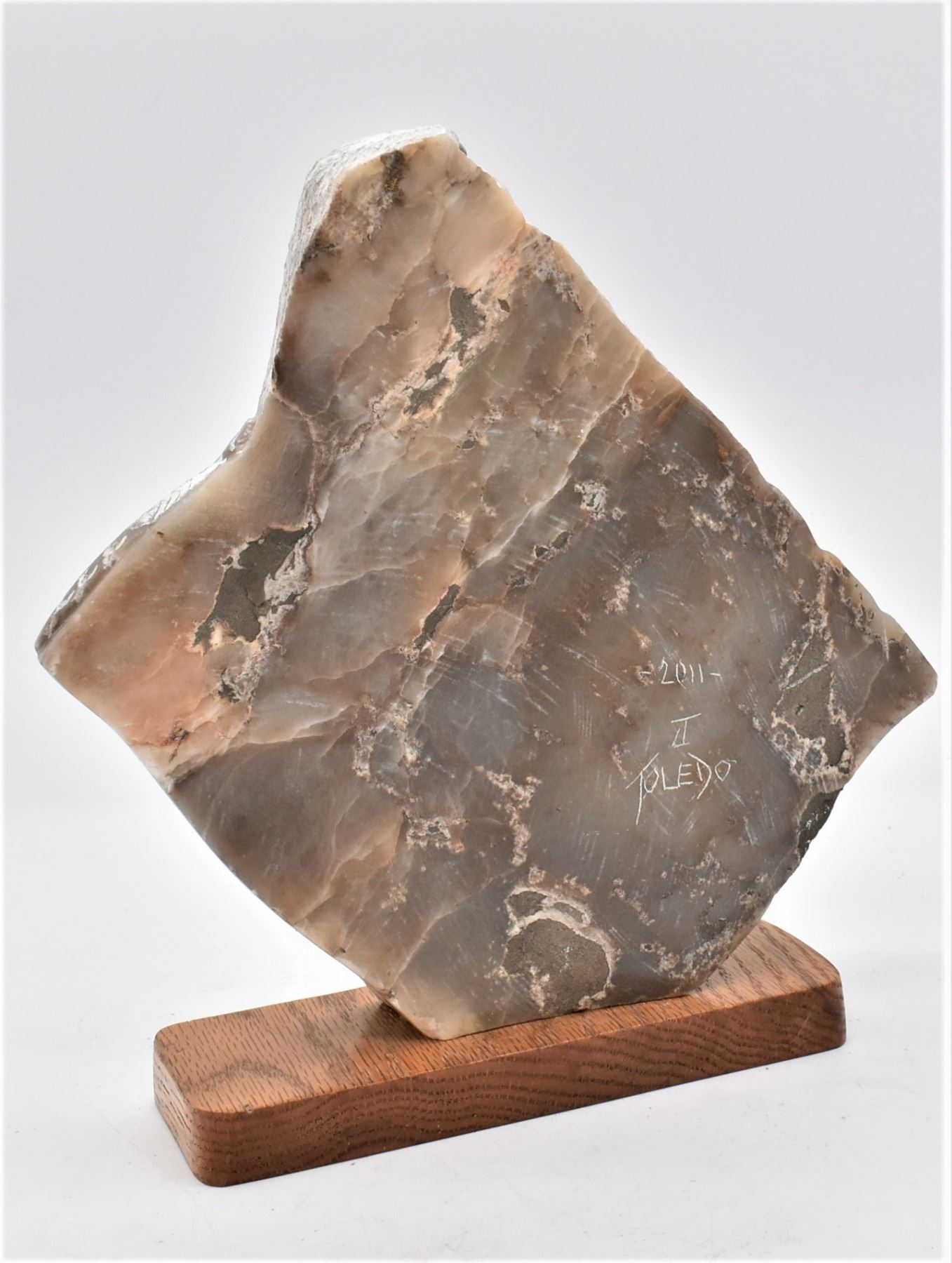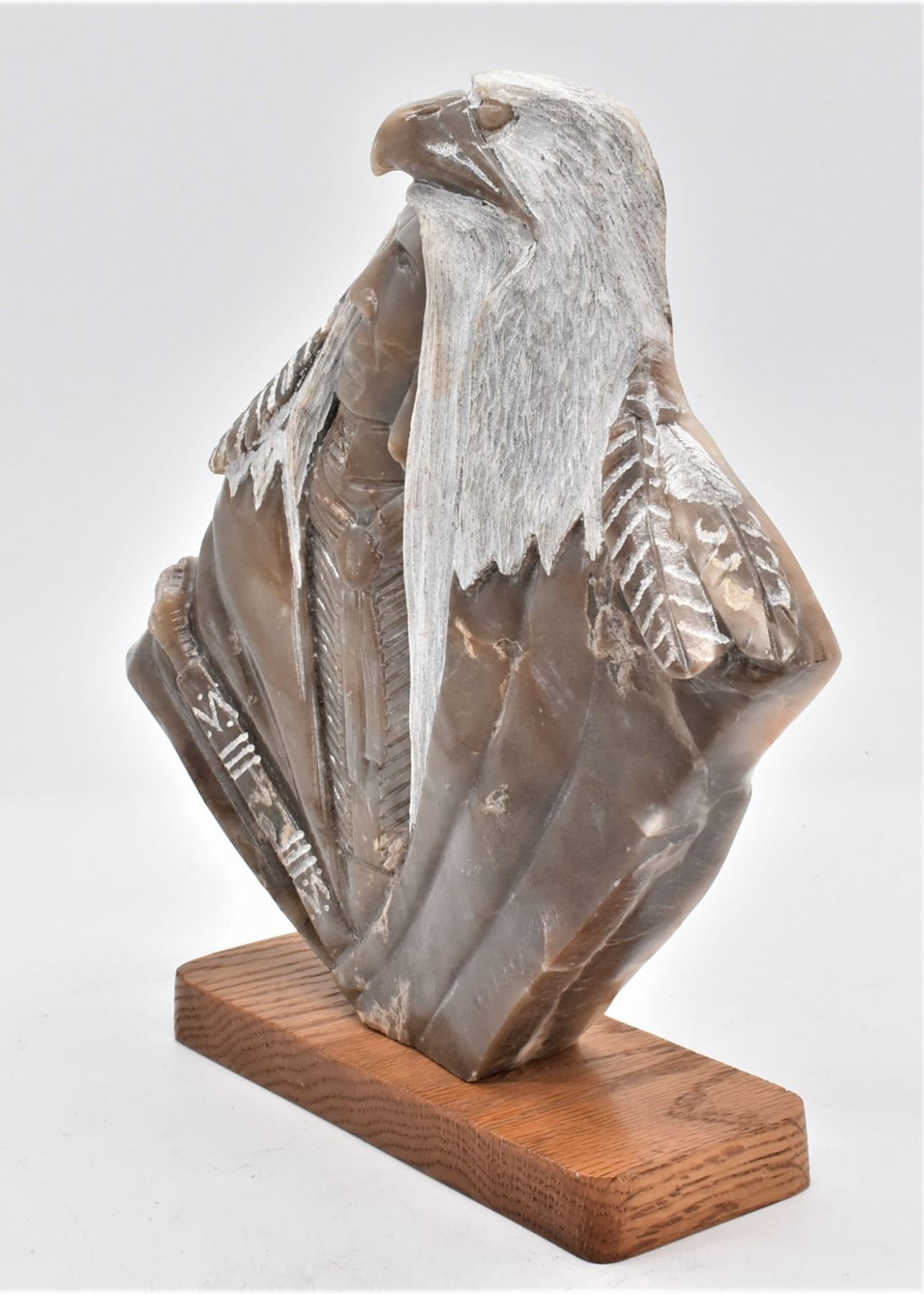 2011 Native American Navajo Alabaster Sculpture on Wood Base by Jordan Toledo, measures 10" x 10" and is signed and dated on the back, well executed "Eagle Warrior"