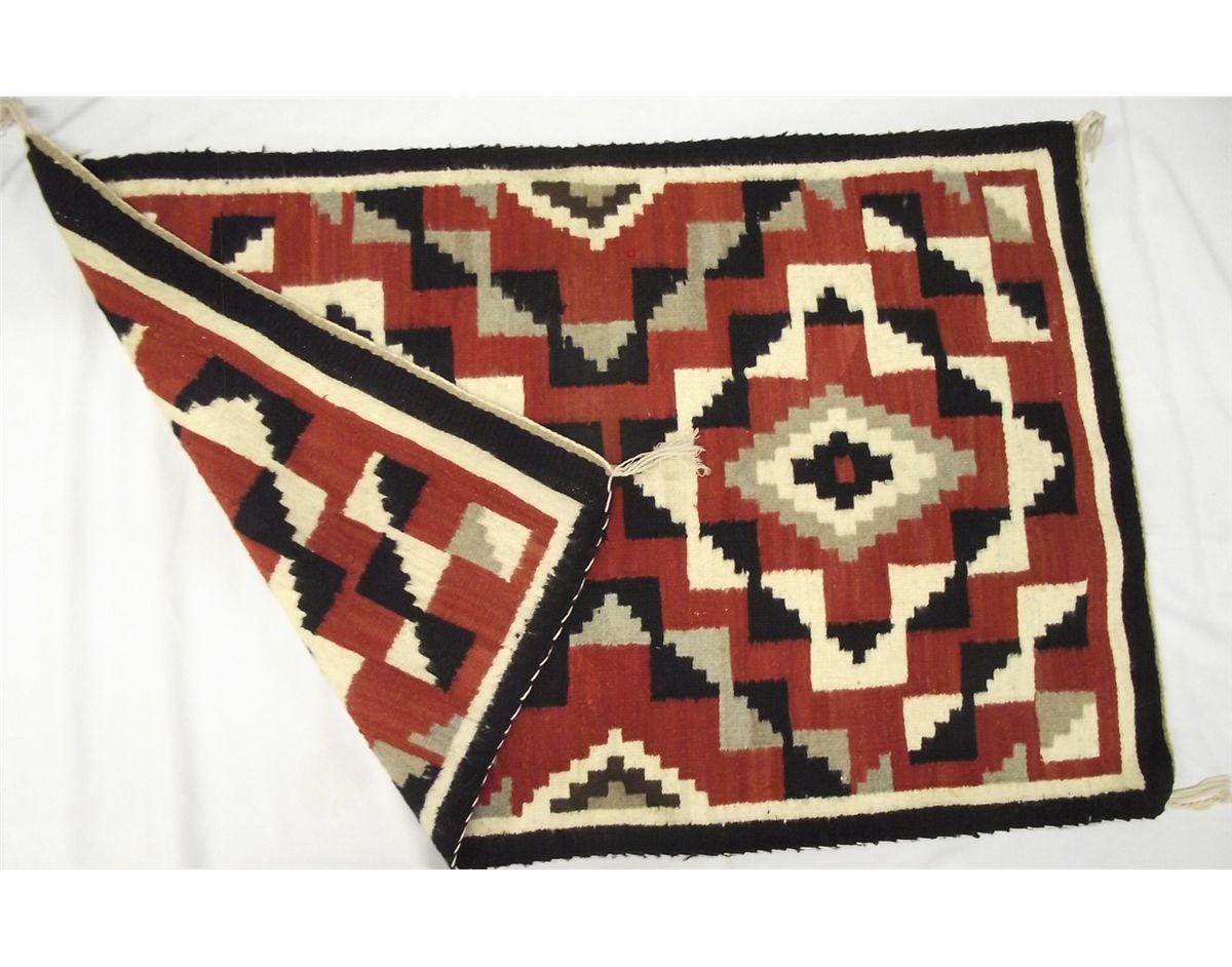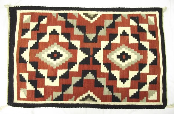 Navajo All Natural Double Diamond Wool Rug, measures approx. 30''W x 32''L. Crisp, Clean Colors. All Tassles in tact, no tears, no stains.