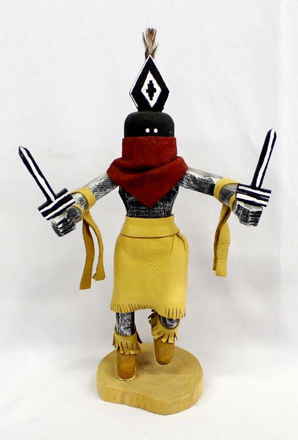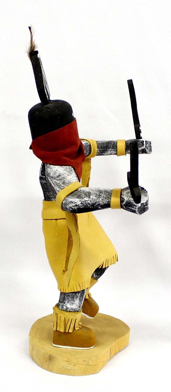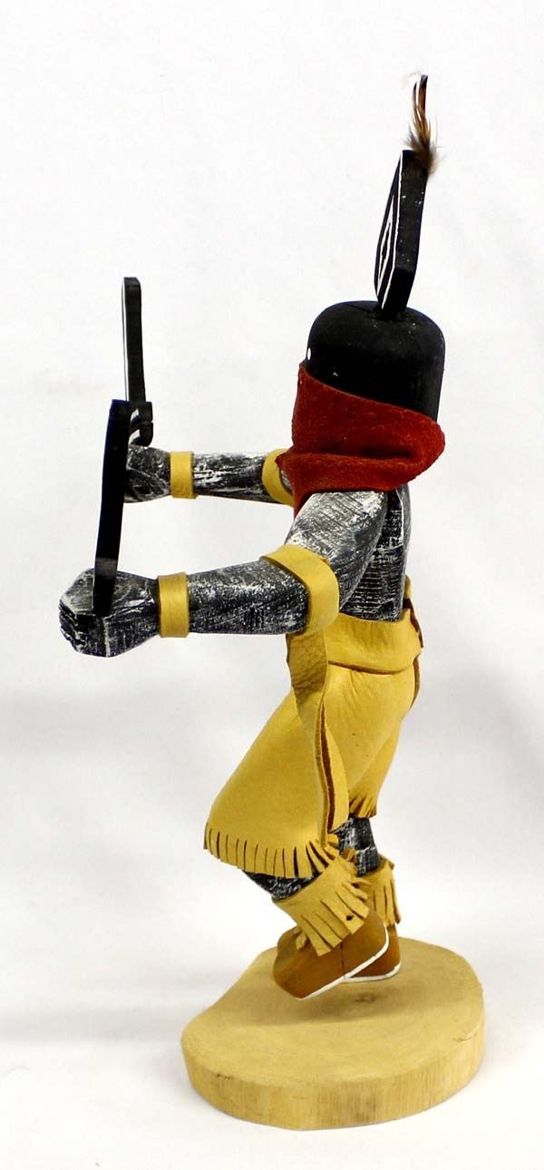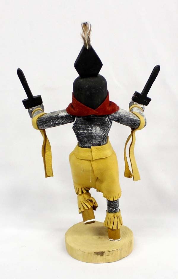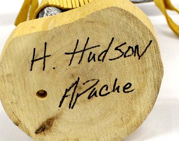 Native American Navajo ''Apache Dancer'' Kachina by H. Hudson, measures 16''H x 9''W x 4.5''Deep, signed on the bottom, embellished with a single feather and leather