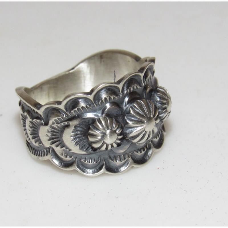Navajo Band Ring Size 9 Sterling Silver Repousse Band Signed Bennie Ramone