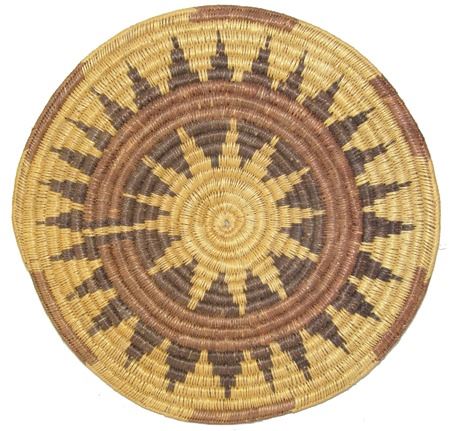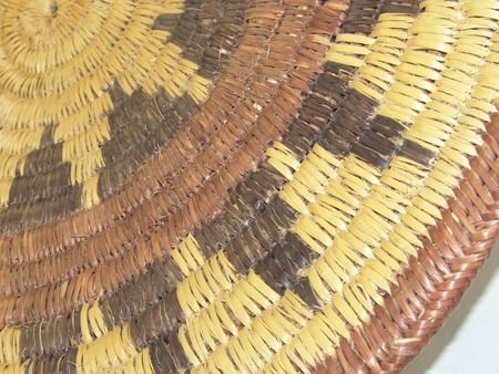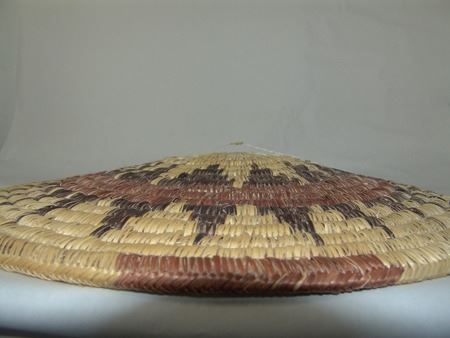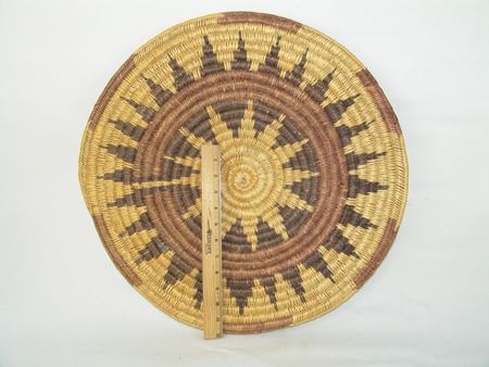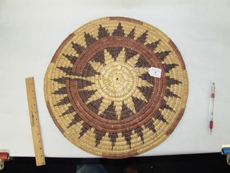 Mid 1900s, Traditional hard weave wedding basket done in classic colors and a nice larger size. Very good condition. 2-1/2" x 20"