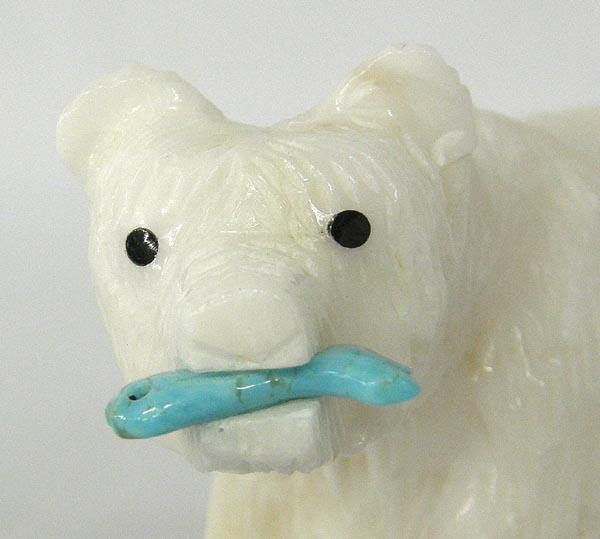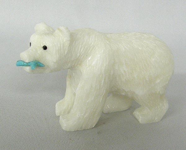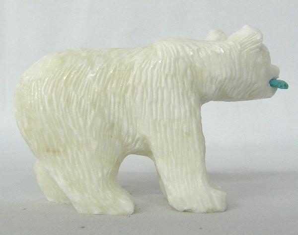 Navajo Bear Fetish By Jefferson Howe. Has turquoise fish and jet eyes. Measures approx. 2.5'' x 3.5'' x 1.25''. SHI $15.